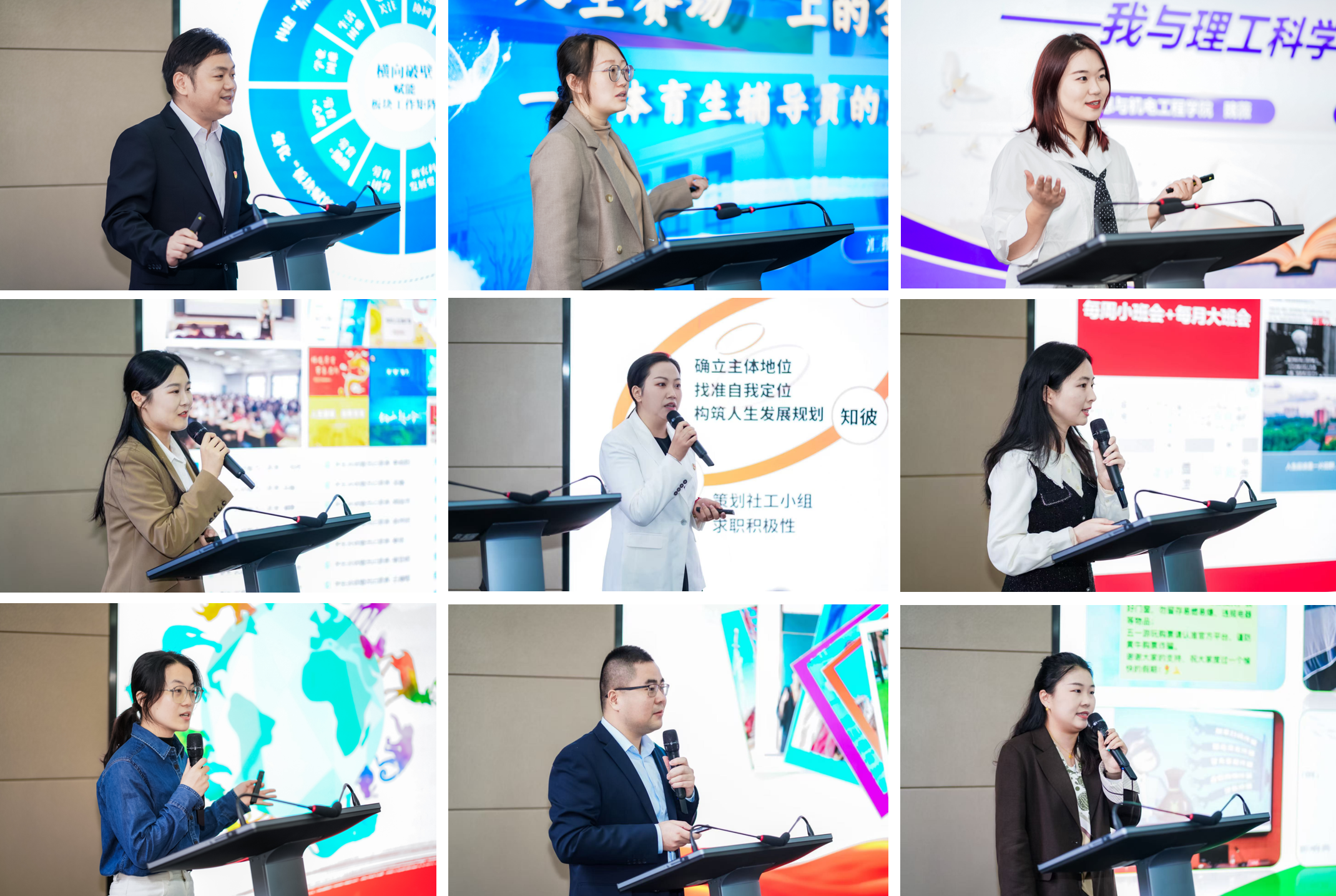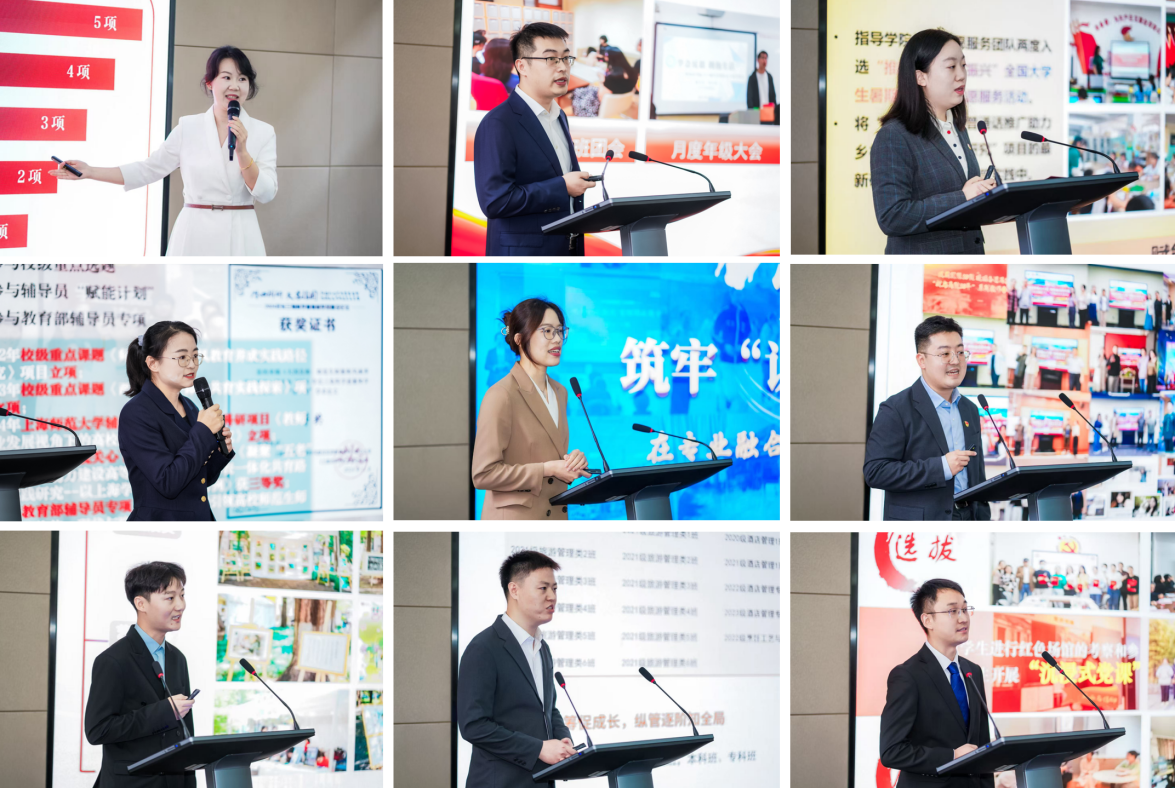 18名候选人通过自我陈述、成果总结、交流答辩等方式,全方位呈现育人初心与专业素养。他们结合一线工作经历,从党建引领铸魂、网络思政创新、朋辈教育实践、创新创业指导等多个维度,生动分享了特色工作方法、丰硕育人成果与深刻职业感悟,用一个个鲜活案例诠释了新时代辅导员“人生导师”与“知心朋友”的双重担当,充分彰显了我校辅导员队伍的专业能力与精神风貌。