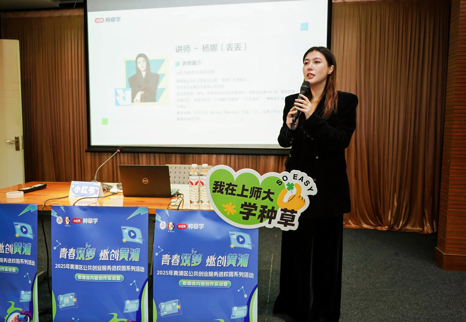 秋意正浓,梦想启航。11月7日下午,2025黄浦区公共创业服务进校园系列活动——“青春筑梦 燃创黄浦”新媒体内容创作实训营在上海师范大学徐汇校区第四教学楼B101教室启幕。本次实训营聚焦小红书生态,以“兴趣社交+潮流业态+创业实践”为核心,通过“理论授课+案例分析+分组讨论+政策解读”多维模式助力学生探索线上营销与电商运营路径,提升创业项目市场竞争力与落地可行性。