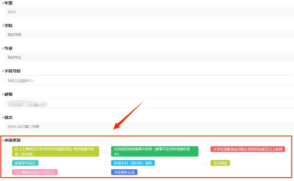 特别提示:在学习通中填报时,有符合《认定通知》(附件1)中认定标准材料的同学,“申请类别”按照实际申请材料的类型选择,不要选择“毕业班补认定”选项,否则会影响成绩判定;无符合《认定通知》(附件1)中认定标准材料的同学,“申请类别”务必选择“毕业班补认定”。