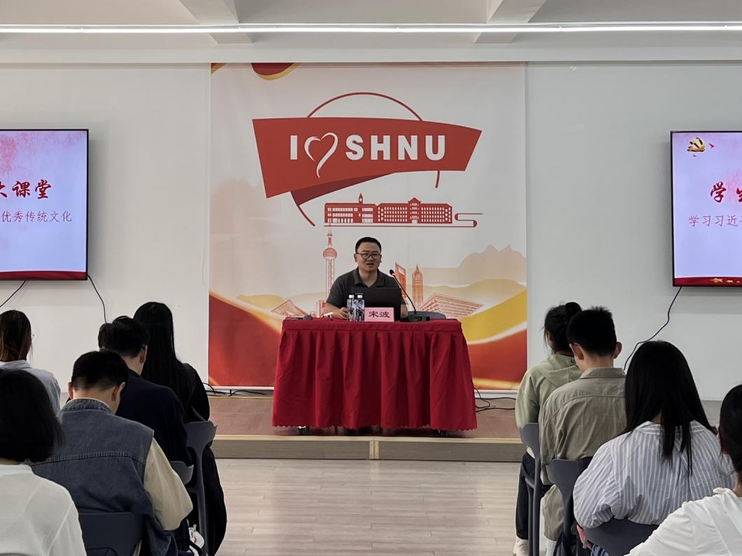 5月15日下午,以“学习习近平文化思想,弘扬中华优秀传统文化”为主题的学生生活园区党员大课堂在我校徐汇校区东部党建服务中心顺利开展。上海师范大学博物馆宋波老师带领学生党员参观了校博物馆并作专题讲座,为同学们详细地介绍了校博物馆的发展历史、设计理念、馆藏文物及文物意蕴等内容,来自我校各学院的50余名学生生活园区党员参与此次活动。
