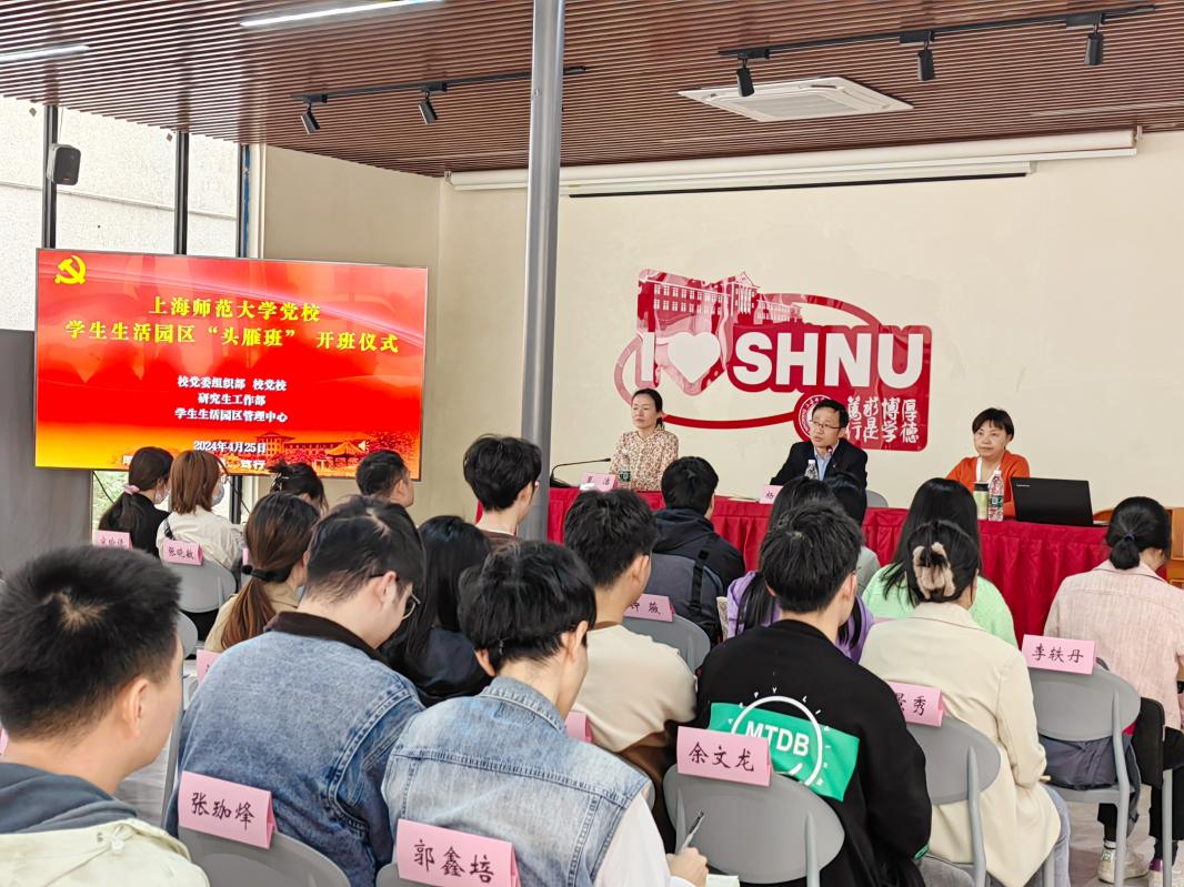 4月25日下午,上海师范大学学生生活园区党支部书记“头雁班”(第三期)开班式在徐汇校区东部学生生活园区“思享屋”举行。校党委组织部副部长杨成龙、校党校副校长夏洁出席开班仪式,学生生活园区管理中心主任谢青主持开班仪式。