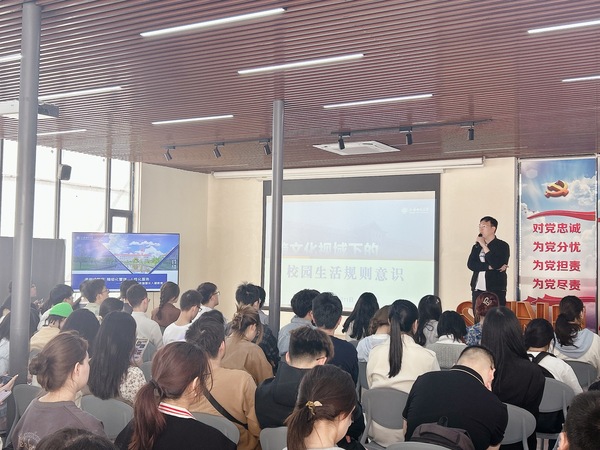 学工部教师以《跨文化视域下的校园生活规则意识提升》为主题,以中美校园社区生活的几个故事开场,分享了自己关于中美校园管理对比的感受,通过对比中美学生教育管理和校园管理异同,提升学生在生活社区的规则意识。