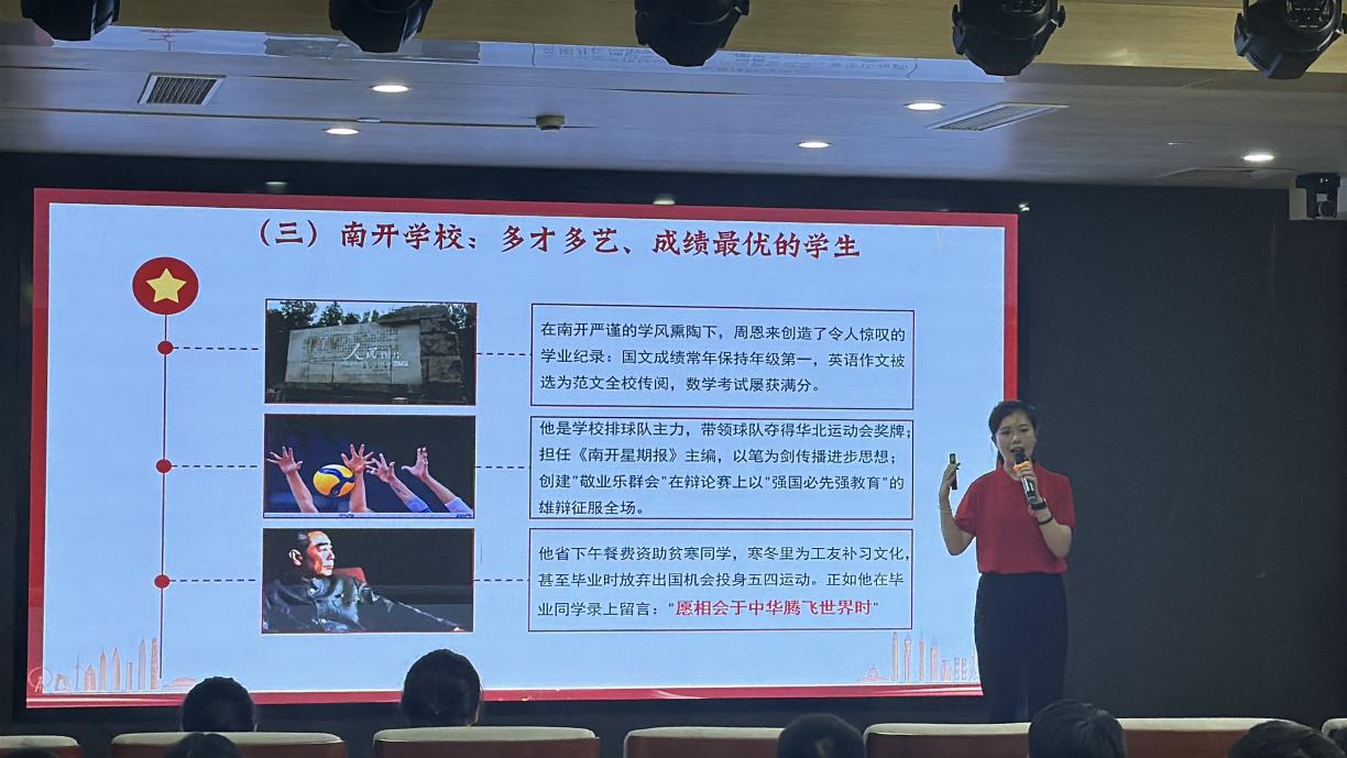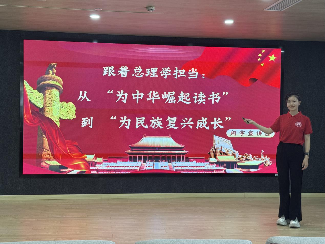 宣讲团副团长杜珺涵作为翔宇学子代表立足历史育人资源,结合周恩来总理“为中华之崛起而读书”的经典论述,将历史纵深与时代要求相结合。通过鲜活案例讲述新时代青少年如何将个人成长融入民族复兴伟业,在互动环节中耐心解答同学们关于理想追求、学业规划的疑问,现场氛围热烈。