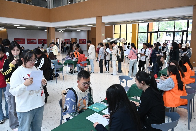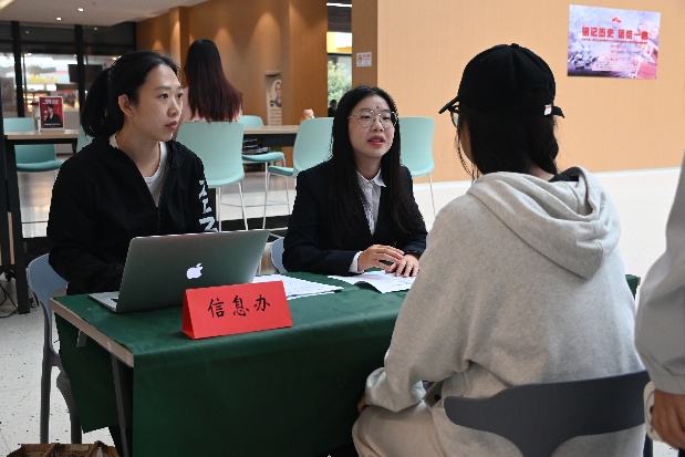 线下会场同样人头攒动、氛围火热。线下招聘会覆盖学工部、教务处、后勤服务中心等多个校内职能部门,提供行政助理、接待员等多种岗位。现场秩序井然,同学们有序填写申请材料、排队参与面试,各部门负责老师及学生工作人员耐心答疑,逐一开展面试,最终不少同学与用工部门达成初步意向。