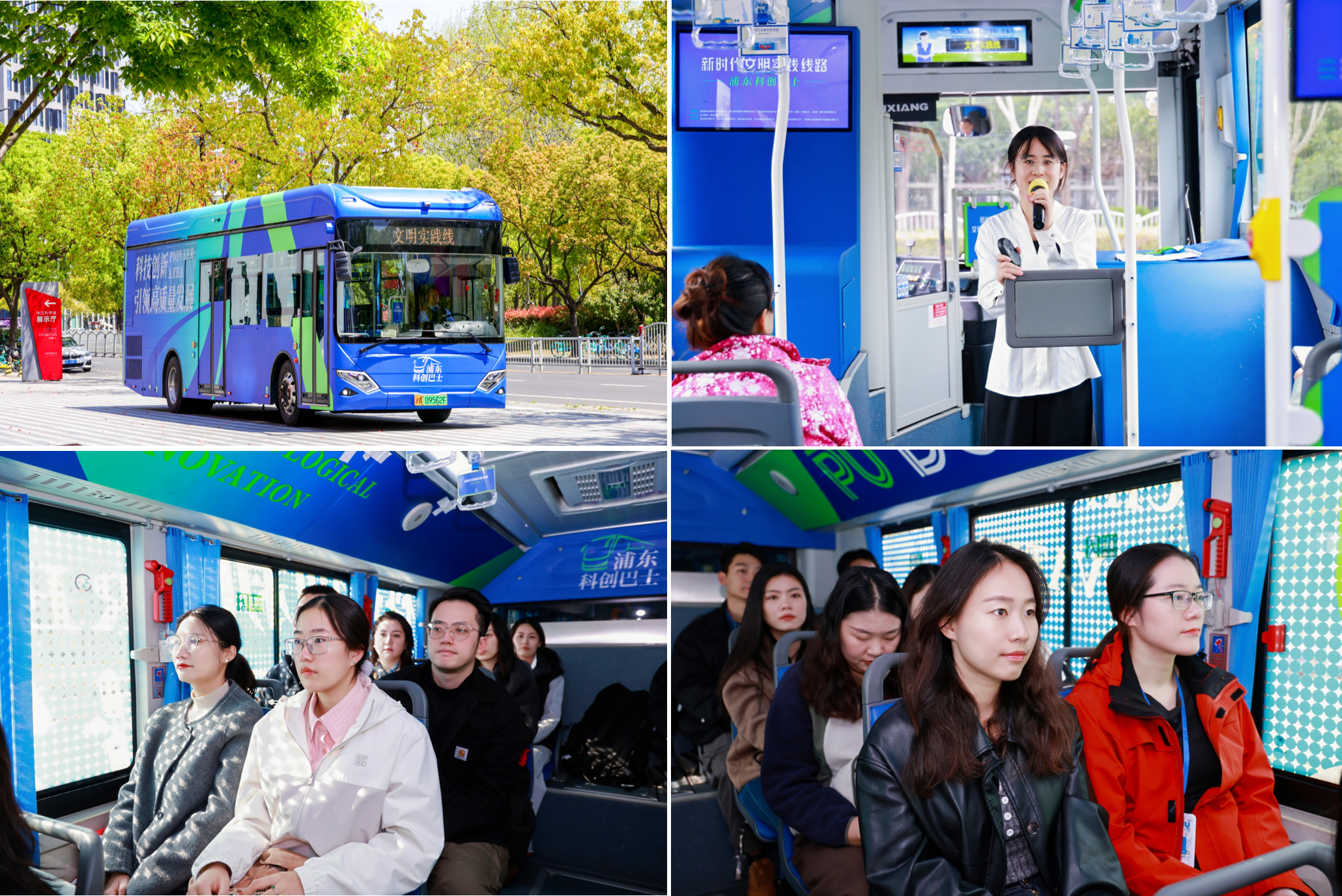学工团队抵达浦东新区城市规划和公共艺术中心,搭乘浦东新区精心打造的“科创巴士”。作为浦东以“科创+科普”形式推出的“移动科创课堂”,巴士以科技蓝为主色调,串联起上海光源、李政道研究所等35个科创地标。通过原创视频、图文展示、互动问答等形式,研学团队清晰了解到浦东从“第一枚探空火箭”到“首架国产大飞机”、从“数字人”到“具身智能”的发展脉络,深刻感受浦东的科创成就,激发了在育人工作中创新奋进的动力。