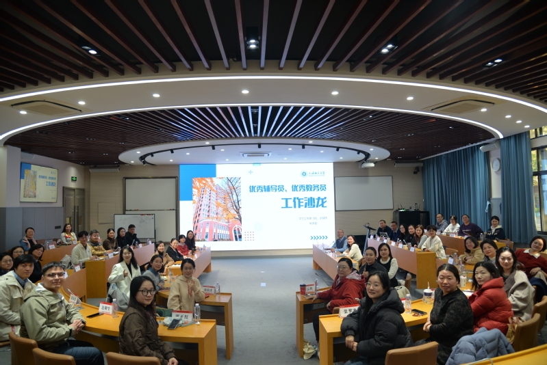 为深入贯彻落实党的二十届四中全会精神,切实提增“三全育人”工作质效,充分联通学生成长成才各环节、各方面的育人资源和力量,11月20日下午,“优秀辅导员、优秀教务员工作沙龙”在徐汇校区第六教学楼108会议室举行。教务处副处长陆志昌、学生工作部(处)副部(处)长孙琳、学校“十佳教务员”、第八届“思政先锋”参加沙龙。