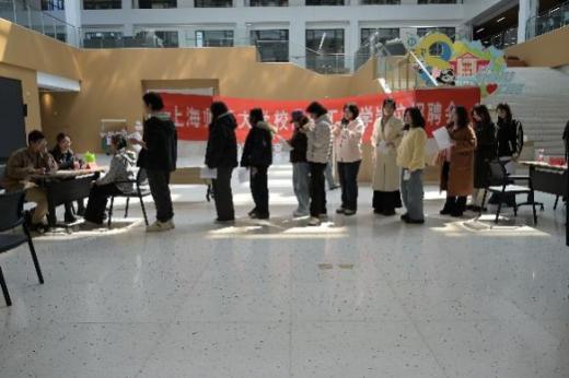 本次招聘会共有教务处、后勤服务中心等15个校内职能部门参与,提供办公室助理、新媒体编辑、幼儿园助教等多个岗位,计划招聘128人。招聘会现场秩序井然、氛围热烈,同学们有序排队、积极应聘;各招聘部门严格对照岗位要求,细致了解应聘者的专业能力、课余时间与实践经历,并耐心解答相关疑问,多名学生与用人部门达成初步录用意向。